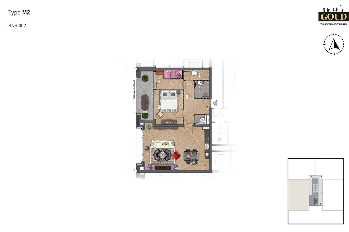 Plattegrond appartement type M2 – BNR 002